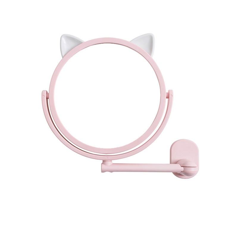 Настенное поворотное косметическое зеркало для ванной с ушками. розовый