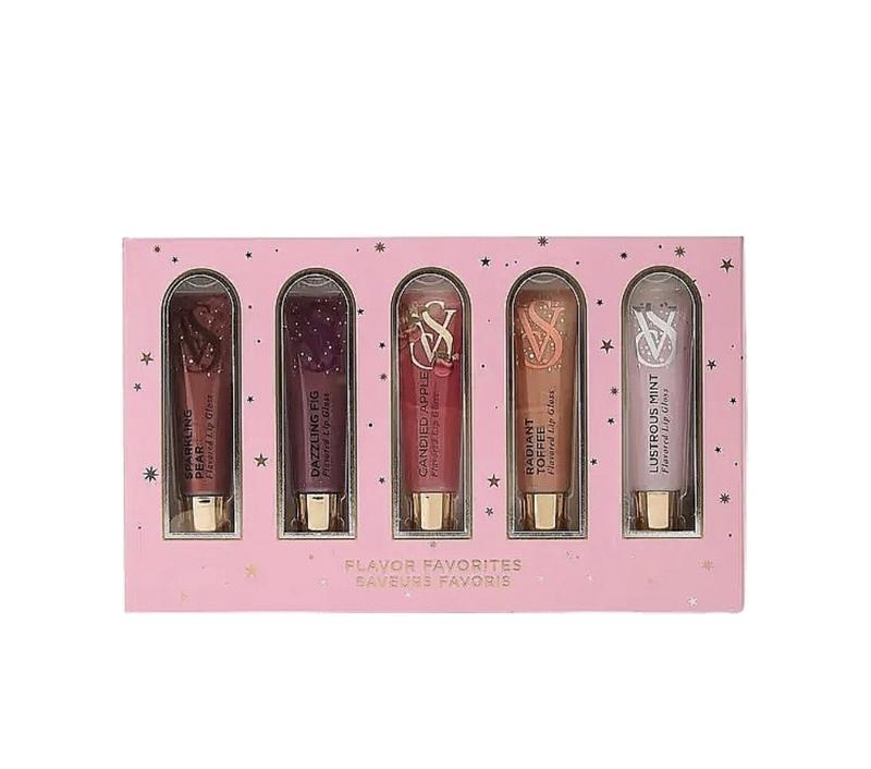 Склад набору: Блиск для губ – Victoria's Secret (Sparkling Pear, Dazzling Fig, Candied Apple, Radiant Toffee, Lustrous Mint), 5x13 мл Якщо хтось і знається на спокусі та звабленні, то це майстри Victoria's Secret, а набір із 5 блисків для губ Flavor Favorites це лише підтверджує. Іскриста груша, сліпучий інжир, зацукроване яблуко, променисті іриски та блискуча м’ята — звучить як солодке задоволення. Дійсно, кожен продукт пахне настільки смачно, що їх хочеться наносити щохвилини! Всі відтінки напівпрозорі, тож мають дуже природний і ніжний вигляд. Вони чудово працюють як соло, так і в дуеті з улюбленою помадою чи олівцем — просто додайте макіяжу глянцю й глибини кольору.