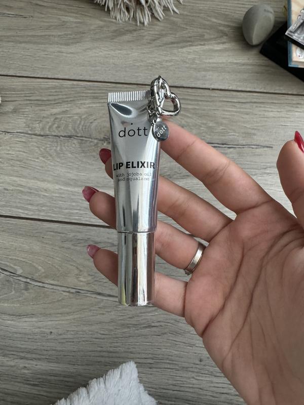 Придбала та зробила один затест, занадто рідкий для мене, можливо це саме те, що ви шукали. Опис з сайту: Lip care & statement accessory — усе в одному 💋 Напівпрозорий колір AURA у відтінку еспресо делікатно підкреслює природну красу губ і додає легкого глянцевого блиску. Через ідеальну формулу блиск не липне, натомість зволожує і пом’якшує завдяки сквалану та олії жожоба. Стильний металевий аплікатор робить нанесення блиску справжнім beauty-ритуалом. Карабін Lip Elixir перетворює твій блиск на стильний аксесуар — його можна закріпити на сумці, ключах чи носити як додатковий акцент твого образу. Функціональність, краса та аромат кави з корицею завжди з тобою.