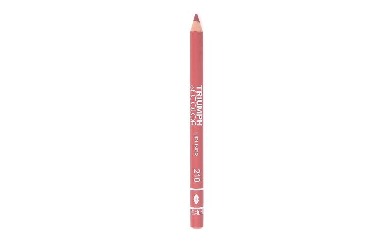 Карандаш для губ Triumph №210 of Color TF Триумф Если природа не наградила Вас достаточно яркими и пухлыми губками, либо они потеряли свой окрас- не расстраивайтесь. Карандаш для губ Triumph of Color с лёгкостью поможет откорректировать форму губ, придать желаемый цвет и чёткость контура. Удивительный состав и кремовая текстура очень нежно покроет чувственную часть кожного покрова, визуально добавит объём и сочность губ. Карандаш не растекается на протяжении дня. Будьте неотразимы с Triumph of Color