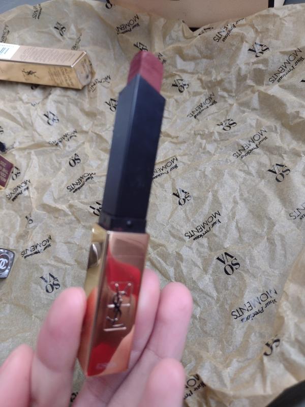 Шикарная бредовая помада с эффектом лаковой кожи, насыщенный цвет как на свотче с интернета, сделала свотч на пальце, растерла цвет чтоб было видно что имеет холодный малиновый подтон, а не терракотовый как кажется изначально. Очень красивая, в коробочке но без колпачка.