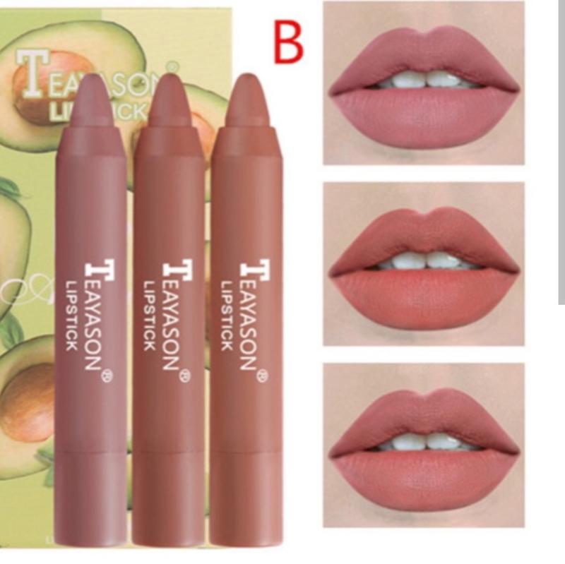 Набор суперстойких тинтов от Teayason состоит из 3-х матовых нюдовых оттенков.Оксамитная нежная текстура помады насыщена питательными элементами, которые интенсивно увлажняют и защищают кожу губ.