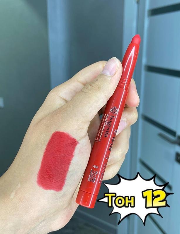 Помада-олівець для губ Bogenia має ряд безперечних переваг. Вона дозволяє підкоригувати форму губ, зробивши їх пишнішими та об'ємними. Вона виглядає доречно і ефектно не лише в повсякденних, а й вечірніх макіяжах. Та і врешті- решт, вона фантастично красива. Переваги: - продукт 2 в 1 - олівець і помада в одному стіку; - матовий фініш і насичений пігмент вже після одного шару; - грифель скошеної форми - для максимально чіткого контуру; - не потребує заточування; - чудова стійкість - не розтікається і не боїться вологи; - склад збагачений оліям жожоба і вітаміном Е; - не стягує шкіру і забезпечує комфорт.
