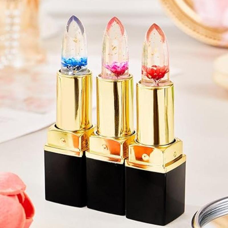 Помада, бальзам для губ, изменяющий цвет с цветком внутри.