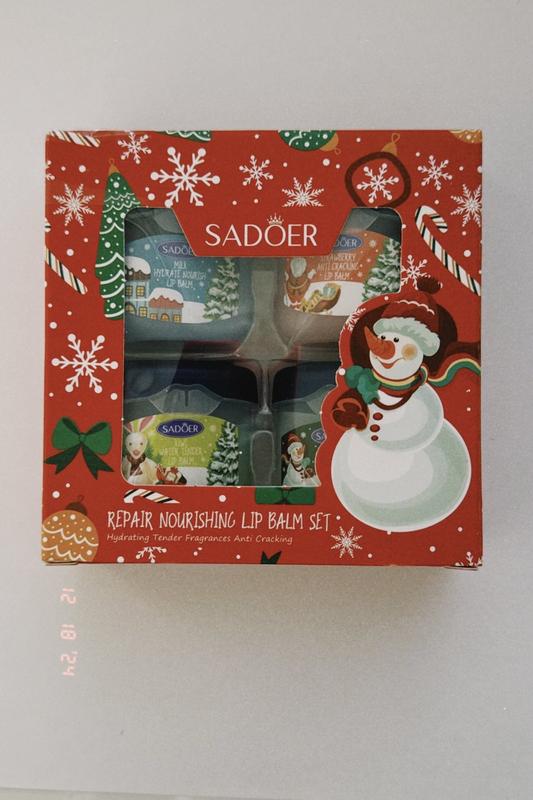 Новогодняя праздничная коллекция бальзамов для губ, четыре вида: 1) Сладкая клубника 🍓 2) пряженое молоко 🥛 3) авокадо 🥑 4) киви 🥝
