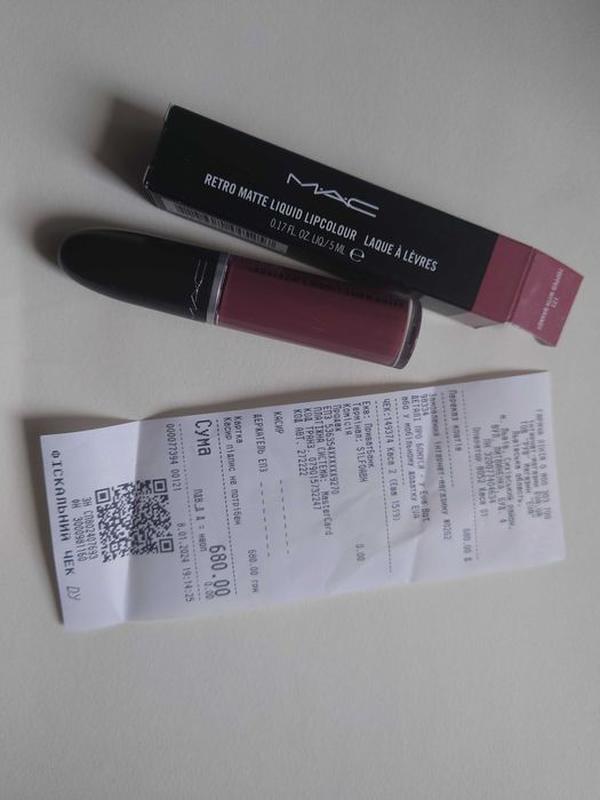 Жидкая матовая помада для губ M.A.C Retro Matte Liquid Lipcolour, Topped With Brandy, 5 мл Нова. Было сделано два затеза индивидуальной косточкой Мне не пришла потому, что через мой подтон губ попадается очень фиолетовая (мени не подходит)