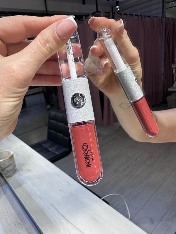 Рідка помада для губ Unlimited Double Touch Limited Edition Kiko Milano Насичений і комфортний базовий колір, розроблений як стійкий, збагачений спеціальною сумішшю плівкоутворюючих полімерів і бездоганно зчіплюється. Кремовий, м'який і заспокійливий блиск для губ ковзає по губах, покриваючи їх чистим світлом і залишаючи їм чарівний глянсовий фініш. Вона особлива, бо: • водостійка, насичений колір тримається до 16 годин; • оксамитовий базовий колір швидко висихає з прозорим блиском; • є легкою, як шовк; • завдяки флокованому аплікатору для базового кольору та ручці для блиску для губ він має ідеальний інструмент для кожного етапу, що призводить до бездоганно рівномірного нанесення.