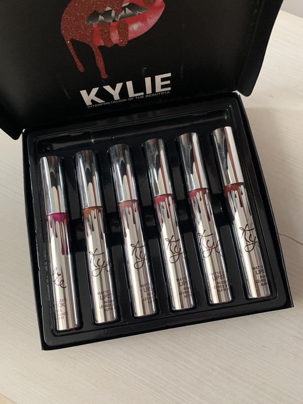 Набір стійких помад кайлі 6 штук в чорній упаковці