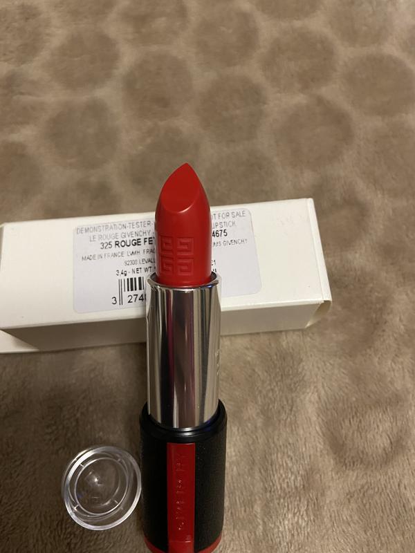 Givenchy помада LE ROUGE 325 тестер оригинал. Цвет : ROUGE FETICHE. Эффект : потрясающе стойкий, богатый полуматовый цвет с бархатным эффектом. Помада имеет ультралегкую, шелковистую и совершенно не липкую текстуру, которая обеспечивает ее мягкое и аккуратное нанесение даже без предварительного обведения контура. С ее помощью губы становятся яркими, объемными и чувственными, в течение всего дня приковывая внимание к своей обладательнице.