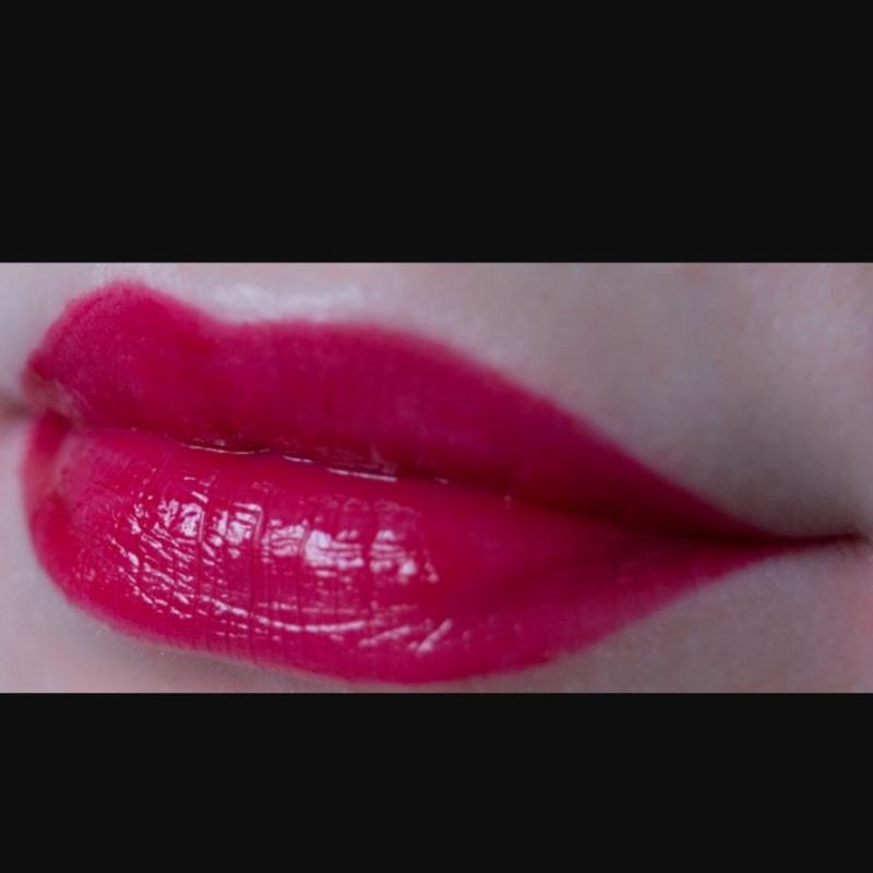 Колір дуже гарний, яскраво-малиновий, фініш — глянцевий, ефект вологих губ, а як помада виблискує і переливається на сонці!