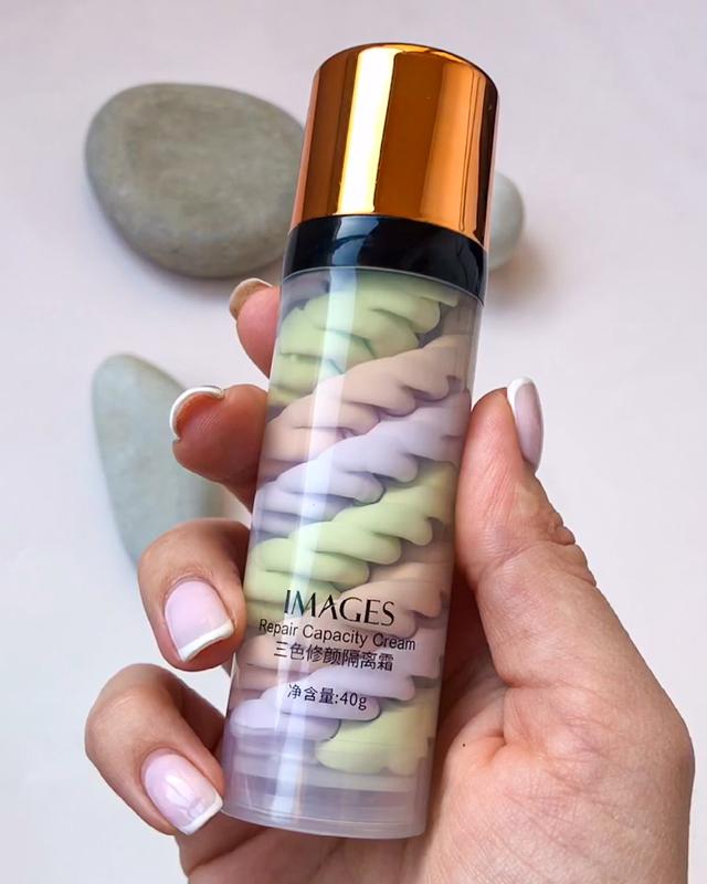 Термін придатності 09.2026. Відправки здійснюю вказаними в товарі службами доставки тільки після 100% оплати на карту продавця. Якщо замовлення габаритне, на вимогу перевізників, його приймають тільки в коробці. До суми такого замовлення додаю 10 грн за мою коробку. Важливо! Підбір косметичних засобів – річ індивідуальна, тому виробники радять перед початком використання, перевіряти реакцію шкіри на відсутність алергії. Як це зробити є у розділі профілю "Про мене". ✔️Опис товару: Об'єм: 40 г. Поставляється у флаконі з дозатором, поміщеному у фірмову картонну коробку. Чудова вирівнююча база праймер під макіяж Images Repair Capacity Cream має три тонуючі кольори, які ідеально маскують усі недоліки за тоном та текстурою шкіри. Робить нанесення подальшого тонального засобу більш простіше та економнішим. Окрім маскуючого ефекту, база також нормалізує роботу сальних залоз та фіксує макіяж. Коректор складається з трьох кольорів, які при нанесенні змішуються та працюють на всьому обличчі. Рожевий коректор - приховує нерівності шкіри, вирівнює тон, маскує синці та пігментні плями. Фіолетовий коректор – прибирає жовтизну обличчя, вирівнює тьмяний колір обличчя та дарує внутрішнє сяйво шкірі. Зелений коректор – нейтралізує почервоніння, запалення та роздратуванняі також відмінно вирівнює тон, роблячи загальний виглядобличчя більш здоровим і доглянутим. В результаті, після нанесення, Ви отримаєте зволожену та підготовлену до нанесення макіяжу, шкіру. Всі недоліки приховані і тональний засіб лягають набагато краще, а макіяж тримається значно довше. Спосіб використання: на очищену і зволожену шкіру нанесіть невелику кількість вирівнюючої бази, дайте їй вбратися і висохнути протягом 5-7 хвилин і можете приступати до нанесення макіяжу.