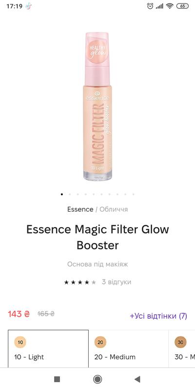 Essence Magic Filter Glow Booster Тон 10 Лайт: жидкий крем; - в нескольких оттенках для индивидуального выбора; - с удобным дозатором и ультралегкой консистенцией; - можно использовать отдельно, как основу под макияж или поверх него; - хорошо наносится, растушевывается и наслаивается; - создает стойкое легкое покрытие, не забивающее поры; - маскирует различные несовершенства, включая красноту и устраняет лишний блеск в Т-зоне; - сочетает хорошие выравнивающие функции с естественным сиянием благодаря частицам слюди; - обогащенный гиалуронатом натрия – эффективным увлажнителем, способным проникать в глубокие слои кожи. 14 ml.без трех использований.