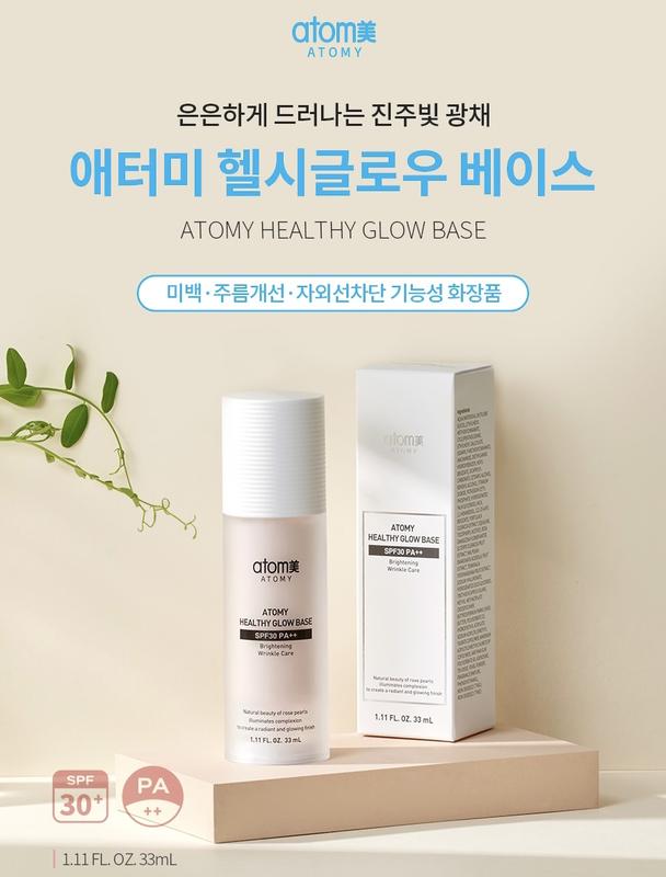 База под макияж Atomy Healthy Glow base это – натуральная красота розовых жемчужин создает эффект сияния кожи. Мягкая формула и розовая вода возвращает коже здоровье и упругость. Осветляет и борется с морщинами. Основной состав: розовая вода, жемчужный порошок, экстракт вишни барбадоской, ягода асаи, сквалан. Убирается полностью и питает кожу, не оставляя ощущения “липкости” и “жирности”, придает благородное сияние и бархатистость. Очень нежная текстура имеет розовый оттенок. Отлично скрывает недостатки. Кожа лица выглядит великолепно.