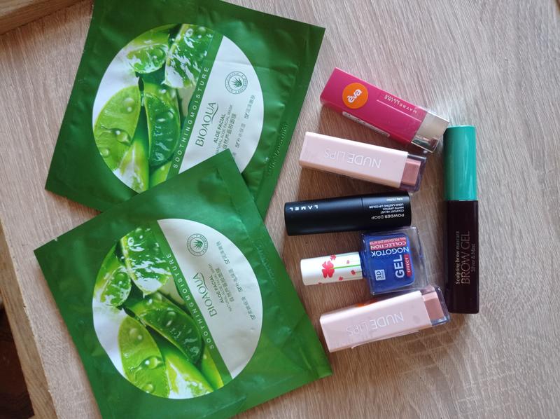 -Маска тканевая для лица увлажняющая Bioaqua с алое, очень красиво выполняет свои функции увлажнения и придания упругости и свежего вида-25 грн шт -Помада лсф нюд липс, увлажняющая помада тон 01, имеет красивый увлажняющий и матовый эффект ціна -85 грн за шт -Помада фирмы ламель цвет пристальной розы, тон спайси 402 цена 100 грн -Помада для губ maybelline new york color sensation, кремовая увлажняющая текстура, цвет яркой фуксии тон 379 фуксия фо м производитель Франция- цена 220 грн за шт -лак для ногтей ноток collection gel effect 3D shine, на ногтях выглядит потрясающе цвет яркой василька тон номер 17- цена 35 грн за шт Гель-краска для бровей насыщенного темно-коричневого цвета с щеточкой имеет красивую текстуру -цена 50 грн за шт