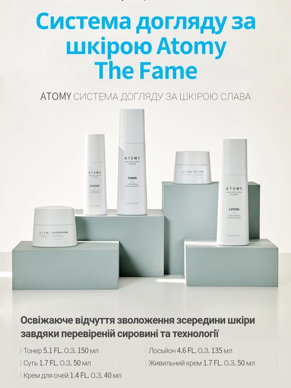 🌹🌀THE FAME от АТОМІ!! 5-ступенчатый набор по уходу за кожей лица Atomy Scin Care System The Fame "Результат репутации, что создается за последние 10 лет, которая станет легендой в следующие 100 лет!" В набор входят тонер, крем под глаза, эссенция, лосьон, питательный крем. ⠀ 🌹В составе тонера следующие компоненты: фитосклаван (липид, полученный из оливкового масла), мысло ши, аргановое масло, пантенол, кислота, керамиды. Этот продукт получил оценку " Excellent" в дерматестовой лаборатории Германии. Тонер увлажняет и успокаивает кожу. ⠀ 🌹Крем под глаза имеет структуру, созданную по технологии терапии кожи человека Human Skin Therapy HST. Нанесенный на кожу крем образует пленку по типу жидкокристаллической, содержащей фосфолипиды (действующие вещества для укрепления кожного барьера). Содержащиеся в пленке компоненты быстро и глубоко проникают в кожу и доставляют высококонцентрированные питательные вещества. Крем убирает мелкие морщинки и глубокие морщинки и смягчает кожу. 🌹 Эссенция с фосфолипидными нано-липапсулами позволяет высокоэффективным активным ингредиентам впитываться в кожу быстрее и питать ее. ⠀ 🌹Лосьон используется для поддержания правильного баланса кожи. Комплекс из увлажняющих и масляных компонентов тщательно наполняет текстуру кожи и обеспечивает отличное питание и увлажнение. 🌹Питательный крем обладает отбеливающим эффектом. Он предотвращает потерю влаги и эластичность кожи. Система «Фит» натуральной поддержки кожи закрепляет результат средств, которые были нанесены ранее. В состав входят высококонцентрированные сложные компоненты, которые обеспечивают кожу энергией, образуют плотную мембрану, что делает эластичной кожу. ⠀ 🌹Фейм - неувядаемая красота, неувядаемая репутация🌺 ⠀ Также есть возможность приобрести каждое средство отдельно.
