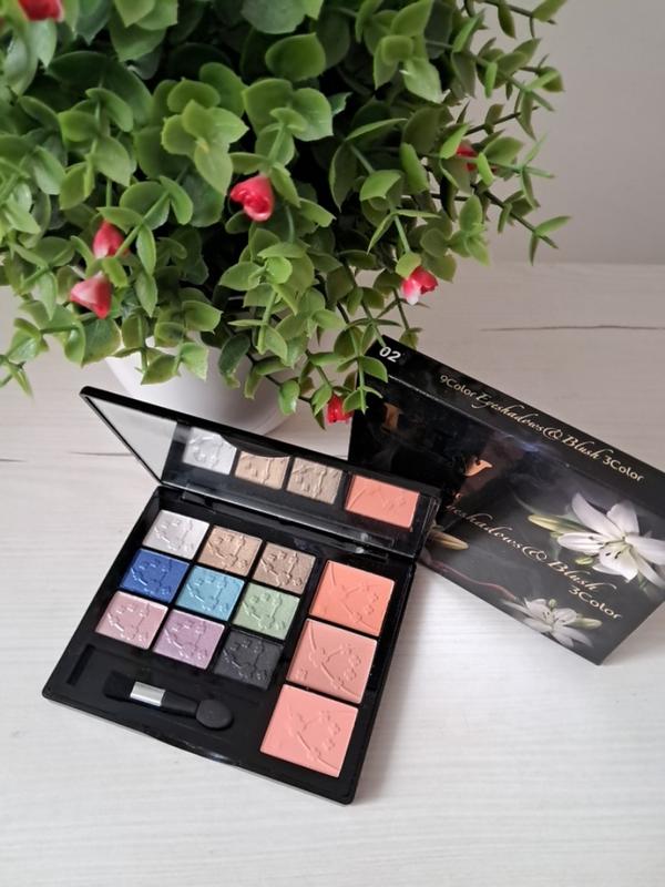 Набор теней 9 цветов с перламутром+ румяна 3 цвета размер палетки 12 см на 10 см есть зеркало и спонжик