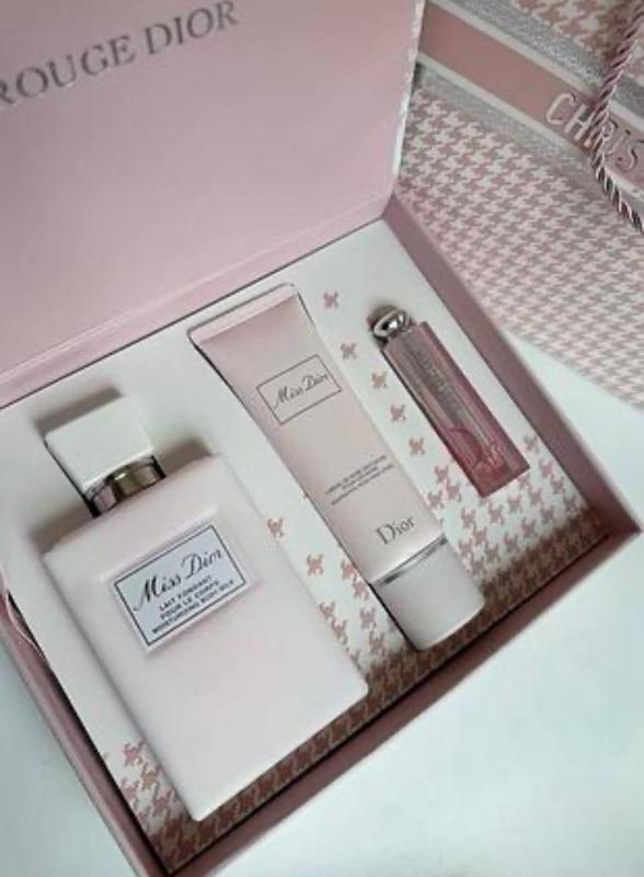 подарунковий набір Miss Dior, який зазвичай включає парфумовану воду або туалетну воду, а також супутні продукти, такі як лосьйон для тіла та мініатюра аромату