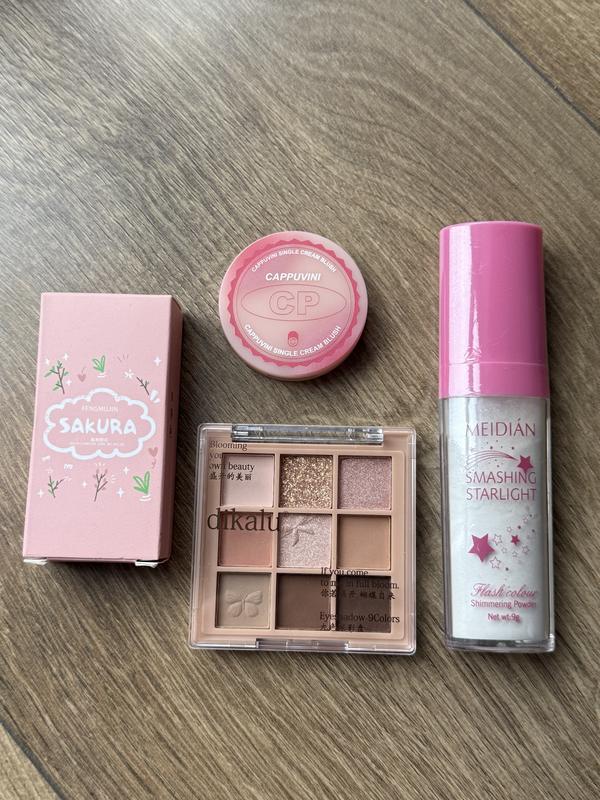 Набір з 4-х одиниць 🌷 • Палетка тіней , пастельні відтінки • кремові румʼяна для обличчя • хайлайтер срібний • парфуми , цитрусові , осінні Термін дії всієї косметики до 2027 року