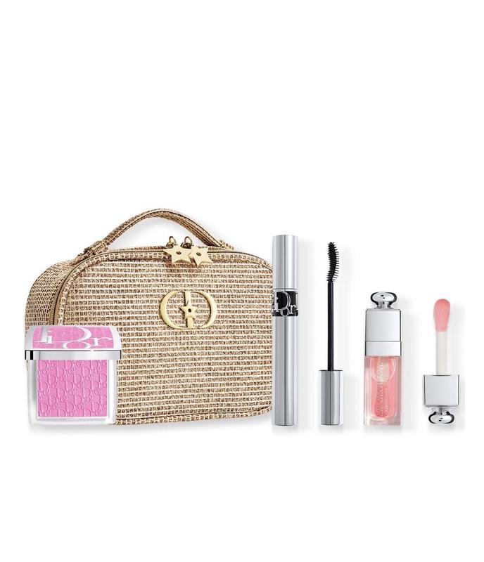 Подарунковий набір декоративної косметики Dior 2025 року складається з трьох продуктів базового щоденного догляду та аксесуару. Підійде як для особистого використання, так і для подарунка. У наборі: Туш для вій Dior 090 Black – чорна туш з ефектом об'єму та завитку. Класичний відтінок, стандартна щіточка. Олія для губ Dior Addict Lip Glow Oil 001 Pink – доглядовий засіб з легким блиском. Надає зволоження, не створює липкості, має легкий рожевий відтінок. Рум’яна Dior Rosy Glow 001 Pink – компактні сухі рум’яна світло-рожевого кольору. Формула адаптується до тону шкіри, надає легкий рум’янець.