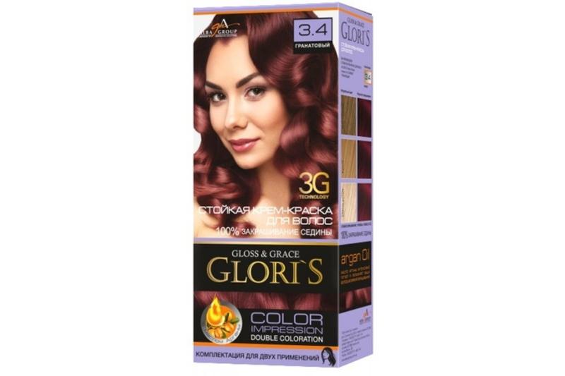 Крем-краска для волос gloris цвет 3.4гранатовый на 1применение