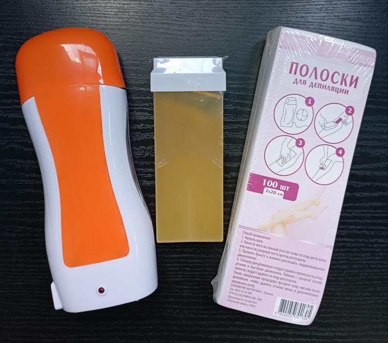 Набор состоит из 3 предметов: 1) Воскоплав кассетный с окошком 2) Кассета с воском 3) Полоски для депиляции Воскоплав кассетный 100 m l легкий и удобный в использовании, для стандартных кассет без регулятора температуры и без базы. - время разогрева 10-15 мин - комплектуется сетевым шнуром - наличие прозрачного окошка позволяет определить степень разогрева и количество воска пластина нагрева с двух сторон. - размеры: 18,5х9х5 см Перед началом процедуры, убедитесь - длина волоса должна быть минимум 4-5 мм. 1. Картридж помещаете в воскоплав (с нового картриджа нужно снять защитную пленку с головки). Включаете прибор в сеть и засекаете примерно 20-25 минут. 2. После того, как воск разогрелся (обжечься им очень сложно, для этого нужно его разогревать в воскоплаве больше часа), выключаете воскоплав от сети. Ноги потереть сухим полотенцем, если надо, о посыпать присыпкой, чтобы убрать излишнюю влагу (особенно актуально под коленями). 3. Переворачиваете воскоплав кверху ногами буквально на 3 секунды (чтобы стек воск), потом проводите на ноге (лучше всего на икре) полосу длиной 10 см (ну, чуть меньше, чем ваша бумажная полоска)по росту волос. Воскоплав ставите на ровную поверхность (ни в коем случае не кладите, только строго вертикально, иначе потечет воск и испачкаете все вокруг). 4. На нанесенную полосу воска по росту волос приклеиваете полоску для эпиляции (лучше всего, если от низа полоски для эпиляции останется где-то 1 см, чтобы было удобнее отдирать), потом по полосе нужно еще пару раз провести рукойпо росту волос, чтобы она прилегла более плотно. 5. Берете за нижний край полоски и резко дергаете против роста волос.При этом тяните не вверх, а вдоль кожи. Если остались волоски, то повторяете все еще раз. Если остался воск (по краям), то эту же полоску снова приклеиваете, там где остался воск и дергаете. Воск прилипнет к полосе. 6. Опять берете воскоплав и повторяете пункт 3 и 4. Для последующих действий можно использовать ту же полоску для эпиляции до тех пор, пока слой воска на ней не станет достигать 2-3 мм (поймете сами, т.к. она будет хуже отдираться). Если воск в картридже остыл, то его можно опять разогреть в воскоплаве и продолжить процедуру. После эпиляции ноги нужно протереть маслом – это удалит остатки воска с кожи. После процедуры желательно в течении 8 часов не мочить ноги, чтобы не было раздражения. Если вы нанесли воск, приклеили полоску, а она нормально е отдирается (воск размазывается и тянется) – это значит кожа была влажной. Лучше всего дать этому месту немного остыть (минуты две), взять чистую полоску для эпиляции и попробовать еще раз. Если не получается, то оттереть воск маслом.