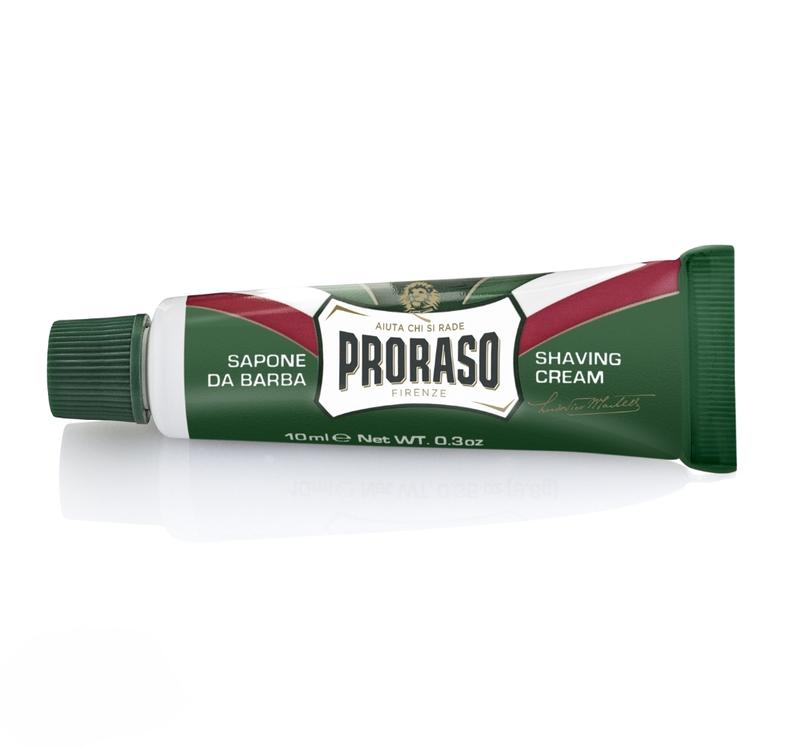 Произведено в Италии, объем 10мл. Крем для бритья Proraso с эвкалиптом и ментолом – новинка бренда, созданная по новой технологии и обновленной формуле. Теперь в составе крема отсутствуют парабенты, красители, минеральные масла, силиконы и ингредиенты животного происхождения. Рецепт производства крема держится компанией в секрете. Известно лишь то, что после варки крем оставляют небольшими партиями созревать еще 3 дня в комнате с постоянной одинаковой температурой. Так крем становится густым, как сливки, и легко превращается в мягкую пену с помощью помазка. Крем для бритья входит в косметическую серию Зеленая Линия (Green Line). А потому он идеально подходит для нормальной и жирной кожи. Имеет классический аромат с нотками ментола и эвкалипта, которые понравятся каждому мужчине. Благодаря активным ингредиентам и натуральной формуле крема, процесс бритья стал намного приятнее и проще. А кожа – более тонизированной и мягкой на ощупь. Рекомендации по применению: необходимо смочить лицо водой, сбить увлажненным помазком мыльную пену в чаше и нанести ее на лицо. Такая мягкая и приятная пена очень хорошо размягчает волоски и значительно упрощает процесс бритья.
