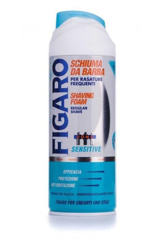 Пена для бритья FIGARO Sensitive. Ласково ухаживает и защищает кожу. Предотвращает раздражение кожи после бритья. Формула три в одном : увлажнять, защищать и нежно заботиться о вашей коже. Обеспечивает приятное бритьё в труднодоступных для бритвы местах. Дермотологически тестирована.
