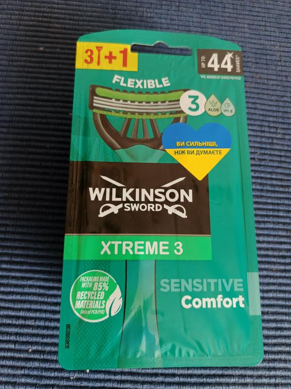 Бритва одноразовая Wilkinson Sword Xtreme 3 Sensitive, 4 шт, Германия, оригинал! Бритва одноразовая Wilkinson Sword Xtreme 3 Sensitive повторяет все изгибы лица, хорошо заточенные лезвия бережно срезают волоски, а пропитанные натуральными экстрактами полоски предотвращают появление раздражений. Xtreme 3 дает производительность премиум бритвы, с удобством, гигиеной и одноразовой стоимостью. Особенности: 3 гибкие лопасти на плавающей головке, чтобы внимательно следить за углами лица; имеет полоски, которые обогащены алоэ для более комфортного бритья; легкая ручка с прорезиненной частью для большей управляемости и контроля; практичная крышка путешествия держит бритву безопасной и чистой, когда вы на ходу. В упаковке: одноразовые станки (4 шт.). Смотрите также другие мои объявления!