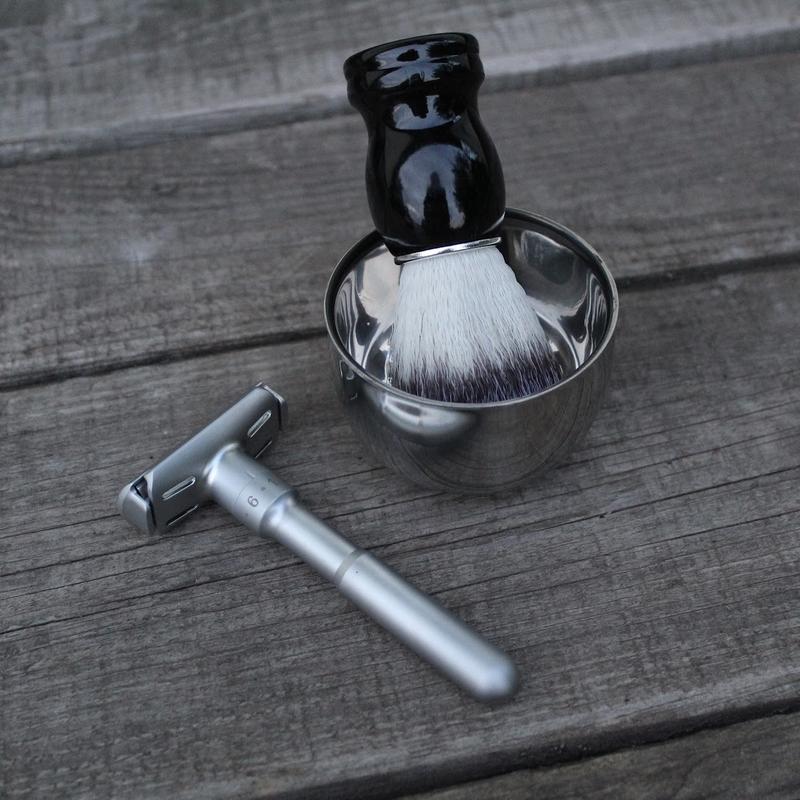 Бритва, помазок и двухслойная чаша - Т-образный станок - Помазок - Чаша Станок для бритья Т-образный - это первоклассный аксессуар, который покупается один раз и на многие годы. Конструкция безопасной бритвы продумана до мельчайших мелочей. Все детали выполнены очень качественно, а дизайн и эргономика на высоте. Станок имеет гребень типа Adjustable, который позволяет регулировать зазор между гребнем и лезвием. Это влияет на агрессивность бритвы. Регулирование производится в 6 режимах, где первый - это деликатное бритье. Такой режим отлично подойдет для новичков, только осваивающих технику бритья Т-образными станками, или для мужчин, которые ежедневно бриться. Дизайн бритвы - выше всяких похвал. Поверхность - матовая, все линии и изгибы плавно перетекают друг в друга, одновременно сочетая в себе элементы классики и современного стиля. Этот аксессуар является аналогом знаменитого станка Merkur Futur, лишь немного облегченного в весе. Бритва поставляется в элегантной коробке черного цвета. В комплекте щеточка и 5 лезвий. ПРЕИМУЩЕСТВА: - Обеспечивает гладкое и комфортное бритье - Оборудован механизмом регулирования (6 позиций) - Высокое качество и долговечность - Изготовлен из нержавеющей стали Чаша Оригинальный аксессуар, который пригодится любому мужчине. Поможет вам создать отличную пену с помощью мыла или крема для бритья. Двухслойная чаша изготовлена из нержавеющей стали. Имеет компактные размеры, поэтому при необходимости его можно легко транспортировать и даже брать в поездку. Прочный металл надолго сохраняет теплоту воды и не позволяет взбитой пене оседать. Помазок Идеальная кисть для бритья, которая гарантирует комфортное бритье даже на самой чувствительной коже. Можно использовать со всеми бритьями и мылом для всех типов кожи.
