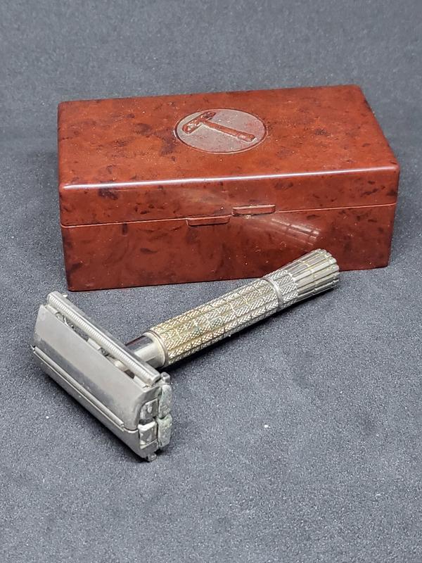 Винтажная бритва Gillette, США, 1955_1960 . микрометрическая Регулируемая бритва, бакелитовая коробка . сделано в США, антикварная бритва Gillette