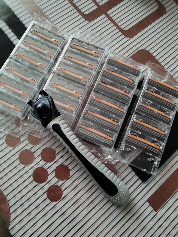 Удобный,лезвия острые, тройные.Одного лезвия хватает надолго