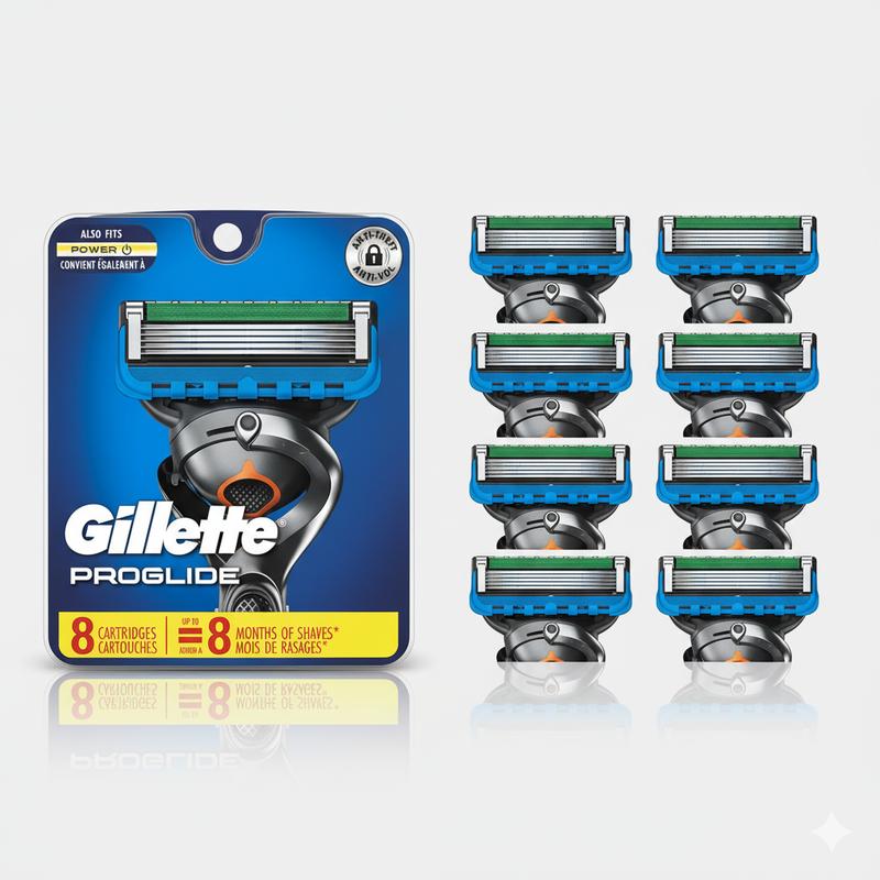 Сменные кассеты Gillette Proglide обеспечивают максимально гладкое и комфортное бритьё без раздражения. Благодаря усовершенствованным лезвиям с улучшенным покрытием и смазывающей полоске, кассеты мягко скользят по коже, уменьшая риск порезов и покраснений. Тонкие и острые лезвия позволяют с лёгкостью сбривать даже самые короткие волоски и труднодоступные участки. Кассеты совместимы со всеми ручками систем Gillette Fusion, ProGlide и ProShield. Основные характеристики: - Модель: Gillette Proglide - Тип: сменные кассеты (картриджи) для бритья - Количество в наборе: 8 шт - Количество лезвий в кассете: 5 - Совместимость: со всеми бритвами Gillette Fusion, Proglide, Proshield - Тип смазывающей полоски: улучшенная формула для лёгкого скольжения - Особенности: плавное бритьё, без раздражения, точный триммер для труднодоступных мест - Страна производства: Германия / Великобритания (в зависимости от партии) - Производитель: Gillette Сфера применения: Предназначены для чистого, комфортного и безопасного бритья лица, шеи и других участков тела. Комплектация: - 8 × сменных кассет Gillette Proglide