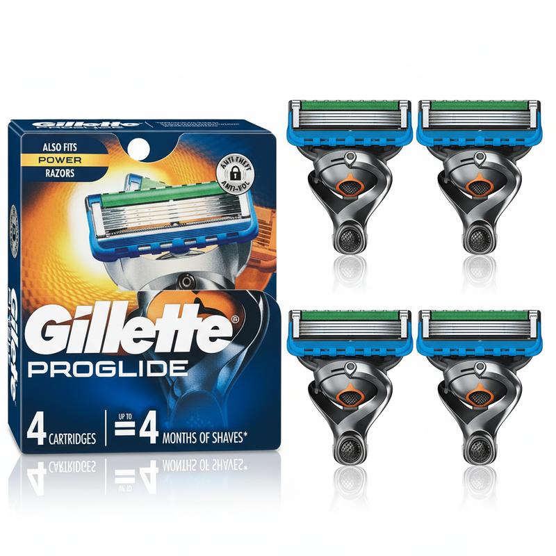 Картриджи Gillette ProGlide -- это сменные лезвия премиум-класса, обеспечивающие максимально гладкое и комфортное бритьё. Пять ультратонких лезвий с улучшенным покрытием мягко скользят по коже, снижая раздражение и риск порезов. Смазывающая полоска с индикатором износа обеспечивает лёгкое скольжение, а точный триммер на обратной стороне кассеты помогает аккуратно подбривать контуры и труднодоступные участки. Кассеты совместимы со всеми ручками систем Gillette Fusion, ProGlide и ProShield. Характеристики: - Бренд: Gillette - Модель: ProGlide - Тип: сменные кассеты (картриджи) для бритья - Количество в наборе: 4 шт - Количество лезвий: 5 - Совместимость: все бритвы Gillette Fusion, ProGlide, ProShield - Тип смазывающей полоски: с улучшенной формулой - Особенности: комфортное бритьё без раздражений, точный триммер - Страна производства: Германия / Великобритания (в зависимости от партии) - Производитель: Gillette Сфера применения: Для чистого, комфортного и безопасного бритья лица, шеи и других участков тела. Комплектация: - 4 × картриджа Gillette ProGlide