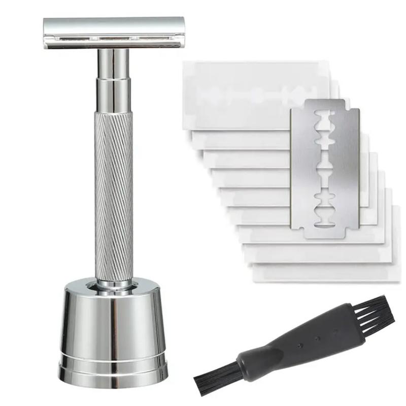Безпечна бритва для чоловіків та жінок, регульований станок для гоління з підставкою срібн...