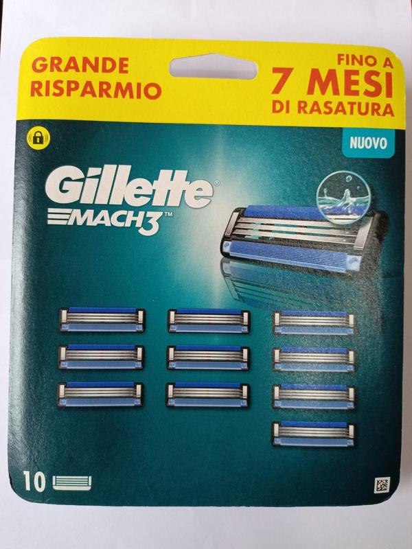 Сменные кассеты Gillette Mach3 - 10 шт (Оригинал) Сменные кассеты Gillette Mach 3 с тремя высокоточными лезвиями с дополнительными покрытиями сохраняющими остроту даже после 10 бритья. Мягкая подушечка из пяти микрогребней для мягкого скольжения по контуру лица и для обеспечения безопасного, гладкого и комфортного бритья. Гелевая смазывающая полоска-индикатор помогает защитить кожу от покраснений, меняет свой цвет на белый, помогая определить оптимальный момент для смены кассеты. Все сменные кассеты Mach 3 подходят ко всем бритвам Mach 3