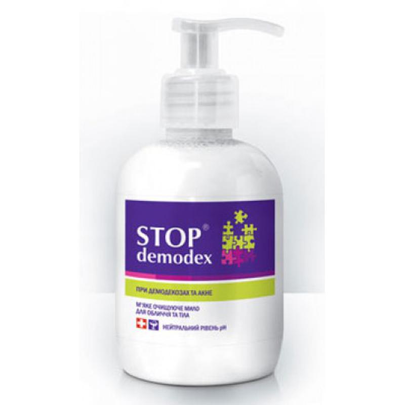 Склад Вода, сульфосукцинат натрію, кокоамфодіацетат динатрію, кокамідопропілбетаїн, гліцерин, акрілат / С10-30 алкілакрілат кросполімер, триетаноламін, ПЕГ-40 гідрогенізована касторова олія, стирол / акриловий сополімер і кокоглікозід, октопірокс, ароматична композиція, ефірне масло чайного дерева, пропіленгліколь, діазолідініл, сечовина, метилпарабен, пропилпарабен. Властивості При демодекозі і акне, для обличчя і тіла. Рідке мило Стоп Демодекс / Stop Demodex® - це перший крок в боротьбі з демодекозом. Впливає на підшкірного кліща, блокуючи на клітинному рівні запальну реакцію, спровоковану бактеріями Propionopacterium acnes, також запобігає повторному зараженню і розвитку демодекозу. Використовується як щоденний засіб гігієни для профілактики активності або повторного прояву, так і при лікуванні демодекозу і акне комплексом Стоп Демодекс / Stop Demodex®. Використовуючи мило Стоп Демодекс / Stop Demodex® при лікуванні демодекозу, відбувається ніжне відлущування верхнього шару епідермісу за рахунок впливу поверхнево активних речовин підвищеної м'якості. При використанні мила Стоп Демодекс / Stop Demodex® вугрі згодом зовсім зникають, стан шкіри значно поліпшується. Надає шкірі відчуття чистоти, комфорту і свіжості. Властивості: має нейтральний рівень рН; м'яко очищає шкіру; сильна протизапальна та відновлювальна дія; блокує розвиток бактерій; регулює вироблення шкірного сала, запобігає зміні його складу; помітно зменшує пори; знімає подразнення; підвищує захисні властивості епідермісу; освіжає колір обличчя; надає шкірі м'якість і еластичність; антисептичний і дезинфікуючий засіб; протипаразитарний ефект; знеболювальна та загоювальна властивість; відновлює природний рівень зволоженості; протигрибковий ефект; знімає свербіж. Рекомендації щодо застосування Рекомендується використовувати як очищувальний засіб для обличчя і тіла при демодекозі і акне. Рекомендується застосовувати регулярно, використовуючи разом з комплексом Стоп Демодекс / Stop Demodex®. Пам'ятайте! Підшкірний паразитичний кліщ має свій життєвий цикл, не меньше 45 днів. Для ефективного лікування необхідно пройти повний комплексний курс лікування. При лікуванні демодекозу і акне важливо дотримуватися гігієни, порядку проведення процедур і певної дієти. Також бажано отримати консультацію лікаря-дерматолога. Спосіб застосування Нанести на вологу шкіру, спінити, змити. При необхідності повторити. Використовувати 2 рази на добу. Курс - не менше 45 днів. Можна використовувати як гель для душу. Протипоказання Індивідуальна чутливість до окремих компонентів. Умови зберігання Зберігати 24 місяці від дати виготовлення при температурі від 5 °С до 25 °С в захищеному від прямого попадання сонячних променів місці. Форма випуску Флакон с дозатором 270 мл.