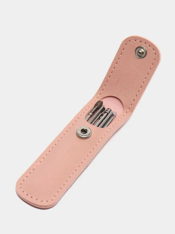 Комплект металевих паличок і скребків для чищення вух рожевий