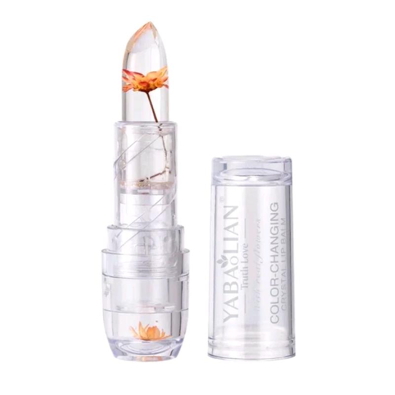 Помада имеет розовый оттенок и пахнет персиком. В наличии два с оранжевым цветком.
