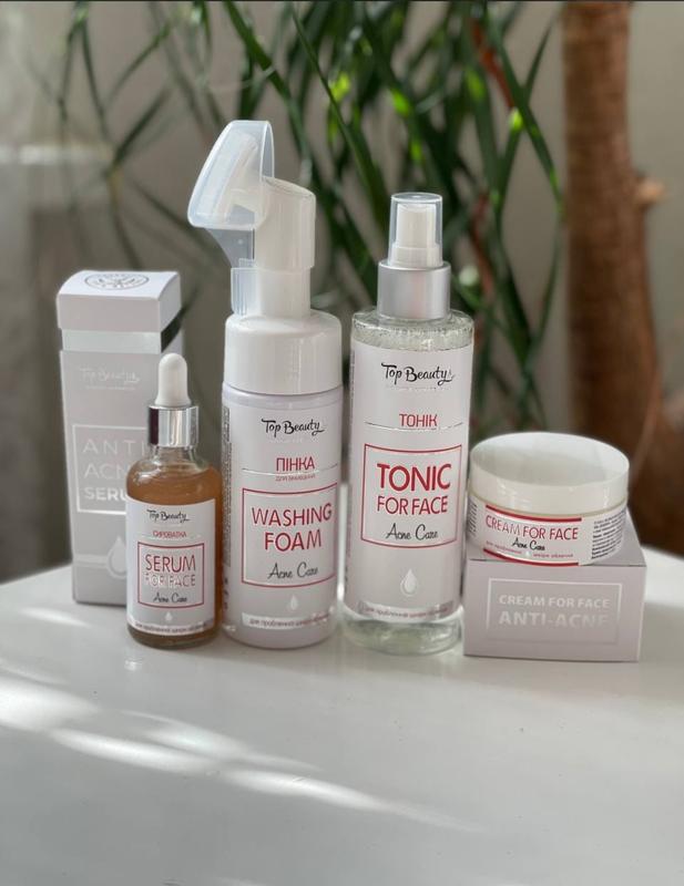 💞Набір для проблемної та жирної шкіри💞 (Пінка(без щіточки ) , тонік, сироватка, крем) 💓Ціна:745грн ✅Заспокійливий тонік підходить для зневодненого, чутливого шкірного покриву, схильного до подразнення. Формула засобу спрямована на м'яке та глибоке очищення, яке відновить pH-баланс шкіри. Крім того, продукт має охолодний ефект, усуваючи дискомфорт та запалення. (Нанести засіб ватним тампоном на шкіру обличчя та шиї, уникаючи зони навколо очей. Використовувати щодня вранці та ввечері. Також можна розпорошувати тонік без використання ватного диска.) 💸Ціна 195грн. -Обсяг 200 мл. ✅Сироватка для проблемної шкіри з екстрактом грейпфрута, екстрактом кореня солодки, полісахаридами. Висококонцентрована сироватка має антибактеріальну дію, нормалізує функцію сальних залоз, локалізує запальні елементи, ефективно заспокоює подразнену шкіру, зволожує. 💸Ціна:210 грн. - Об'єм 50 мл. ✅ПІНКА ДЛЯ УМИВАННЯ для проблемної шкіри з проявами акне без щіточки. З пробіотиком біоліном, екстрактом ромашки та розмарину. Пінка ніжно доглядає, делікатно видаляє забруднення, зволожує та рятує шкіру від акне. 💸Ціна:175грн.-об'єм 150мл ✅Крем для проблемної та жирної шкіри обличчя. Рослинний пребіотик Biolin якісно відновлює природну екосистему шкіри. Перешкоджає появі запалень, подразнень, сухості чи сальності шкіри. Олії та рослинні екстракти, заспокоюють і зволожують шкіру, роблячи її шовковистою та гладкою протягом усього дня. Завдяки функціональному підходу зменшується жирний блиск, кількість висипань на шкірі, знімається роздратування. 💸Ціна:210грн. -50мл.