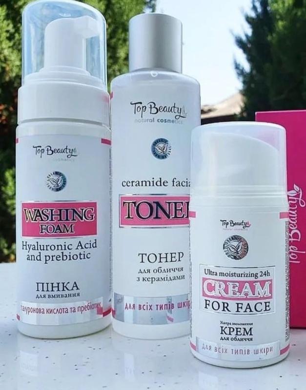 Нет ничего лучше этого набора для увлажнения твоей кожи💁💦💦💦💦💦💦💦 Нежный и натуральный уход даже для самой чувствительной кожи? ⠀ ✅Пенка с пребиотиками 150 мл ✅Тонер с керамидами 200 мл ✅Крем с гиалуроновой кислотой 50 мл ⠀ _______________________ ☘️Ультраувлажняющий крем для лица от Topbeauty вернет коже упругость и восстановит баланс: ⠀ ➡️Увлажняет, убирает шелушение и устраняет чувство стянутости кожи ➡️Предотвращает потерю влаги. ➡️Выравнивает и разглаживает микрорельеф ➡️Повышает выработку коллагена, а значит замедляет старение, разглаживает морщины. ➡️Стимулирует синтез церамидов, улучшает барьерные функции кожи. ➡️Способствует уменьшению воспалений на коже, снимает покраснения, устраняет высыпания. ⠀_____________________________ Тонер с керамидами для лица от Top beauty предназначен для борьбы против обезвоживания и повреждения эпидермиса. ⠀ Обладает интенсивными увлажняющими, смягчающими, питательными и регенерирующими действиями. Тонер способствует устранению ороговевшего слоя, тем самым придавая коже гладкость, равномерный оттенок и рельеф. Тонер стимулирует выработку гиалуроновой кислоты, коллагена и эластина, укрепляет структуру чувствительной дермы. ________________________________ ⠀ Пенка с гиалуроновой кислотой и пребиотиками для ежедневного мягкого очищения любого типа кожи. ⠀ Сохраняет защитные функции кожи, уменьшает воспалительные процессы. ⠀ ✅Не пересушивает кожу, сохраняя целостность гидролипидного барьера. ✅Текстура продукта исключает растяжение кожи лица. ✅Может применяться даже с очень чувствительной кожей.