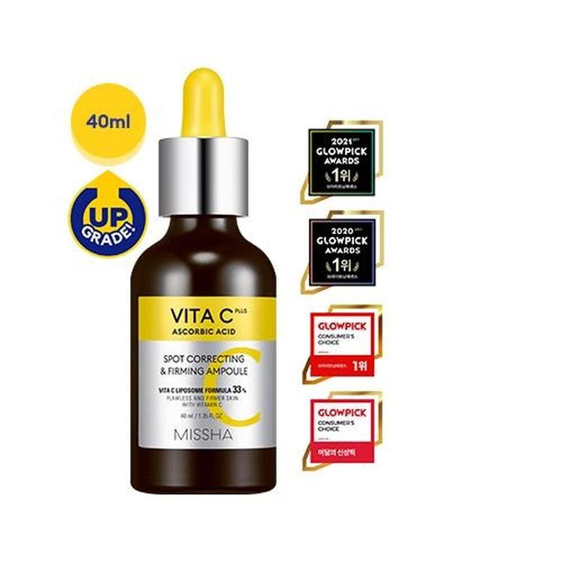 Описание: В состав обновленной ампулы NEW Vita C Plus Spot Correcting & Firming Ampoule от Missha входит 33% формула липосом Vita C, которая инкапсулирует 99% чистого вит. С и коллагена в микрокапсуле для быстрой доставки эффективных ингредиентов для ухода за кожей, делая ее упругой и улучшая цвет лица. Эта восстанавливающая и осветляющая сыворотка 2-в-1 отлично подходит для дряблой кожи, темных пятен, кожи с пигментацией. Клинически доказано, что ампула NEW Vita C Spot Correcting & Firming Ampoule воздействует на семь различных признаков старения: повреждение солнцем, возрастные пятна, неровный тон кожи, потерю эластичности, снижение уровня межклеточных липидов, грубую текстуру и потерю жизненных сил. Расход средства: 5-6 месяцев Особенности сыворотки Missha NEW VITA C plus Spot Correcting & Firming Ampoule 40ml: ¤ рН 6,2. ¤ Не содержит искусственных ароматизаторов и красителей, парабенов, сульфатов, продуктов животного происхождения, спирта и минеральных масел. ¤ Формула липосом Vita C: содержит 99% чистого витамина С ¤ Стабильные формы антиоксиданта в виде аскорбин. кислоты, этилового эфира аскор-била и аскорбил-глюкозида, для лечения и предотвращения изменений, связанных со старением кожи. ¤ Тране-ксамовая кис-та: уменьшает появление темных пятен и гиперпигментации ¤ Гидролизованный коллаген: обогащенный ниа-цинамидом, помогает коже выглядеть и чувствовать себя более упругой и здоровой ¤ Увеличенный объем 40мл ¤ На 8% улучшенная формула Способ применения: Нанести достаточное количество сыворотки на предварительно очищенную, тонизированную кожу, аккуратно распределить по поверхности лица массирующими движениями. Дать впитаться. Затем нанести эмульсию, крем или ночную маску. Состав: Water, Hippophae Rhamnoides Water, Glycerin, Glycyrrhiza Uralensis (Licorice) Root Extract, Methylpropanediol, Butylene Glycol, Niacinamide, Diethoxyethyl Succinate, 1,2-Hexanediol, Tocopheryl Acetate, 3-O-Ethyl Ascorbic Acid, Bifida Ferment Lysate, Tranexamic Acid, Sodium Polyacryloyldimethyl Taurate, Chlorella Vulgaris Extract, Glucose, Caprylic/Capric Triglyceride, Glycine Soja (Soybean) Oil, Fructooligosaccharides, Fructose, Arbutin, Hydrogenated Lecithin, Panthenol, Citrus Aurantium Dulcis (Orange) Peel Oil, Xanthan Gum, Adenosine, Ethylhexylglycerin, Citric Acid, Polyquaternium-51, Ceramide NP, Citrus Grandis (Grapefruit) Peel Oil, Sodium Phytate, Eucalyptus Globulus Leaf Oil, Lavandula Angustifolia (Lavender) Oil, Sodium Citrate, Daucus Carota Sativa (Carrot) Root Extract, Beta-Carotene, Tocopherol, Hydrolyzed Collagen, Allantoin, Glyceryl Glucoside, Palmitoyl Tripeptide-5, Dipropylene Glycol, Caprylyl Glycol, Ascorbic Acid, Hyaluronic Acid, Acetyl Hexapeptide-8, Pentylene Glycol, PVP, Laurdimonium Hydroxypropyl Hydrolyzed Wheat Protein, Hydrolyzed Hyaluronic Acid, Sodium Hyaluronate, Phytosterols, Ascorbyl Glucoside, Fullerenes