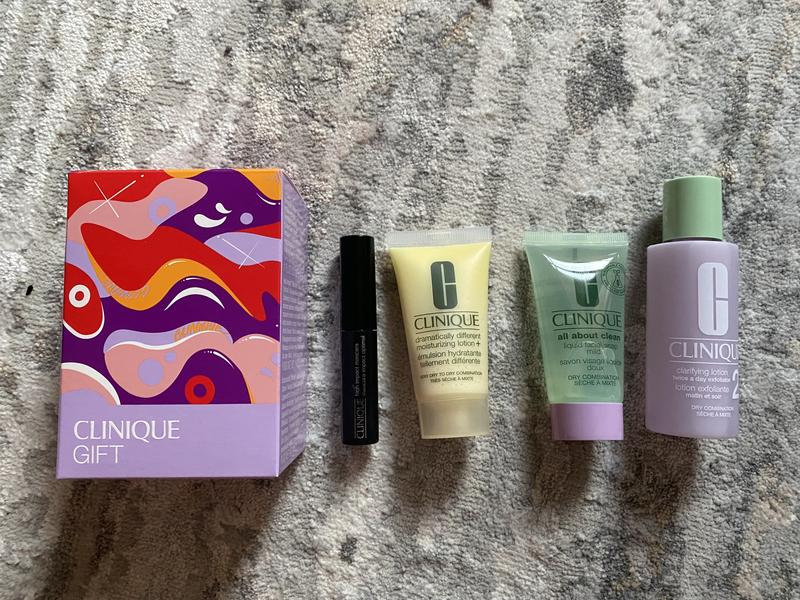 Clinique 3-Step Skin Care Kit Skin Type 2 All About Clean Liquid Facial Soap Mild жидкое мыло для сухой и комбинированной кожи 30 мл + Clarifying Lotion 2 Twice A Day Exfoliator тоник 60 мл + Dramatically Different Moisturizing Lotion+ увлажняющая эмульсия 30 мл + high impact mascara 01 black 3.5 мл