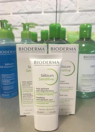 Sensitive Soothing Anti-Blemish Care для обличчя -- заспокійливий та зволожувальний засіб Bioderma Sebium для догляду та відновлення чутливої, схильної до появи акне шкіри. Містить інноваційні комплекси, які сприяють поліпшенню стану та зовнішнього вигляду шкіри. Може використовуватися як база під макіяж. Заспокоює і зменшує почервоніння. Підходить для дорослих і підлітків від 10 років з чутливою та проблемною шкірою. Завдяки своєму складові крем бореться з причинами появи чутливості та запалень: -балансує склад себуму, щоб відновити природні функції зволоження шкіри; -зменшує подразнення та почервоніння, сліди після них; -зволожує шкіру, а матувальна пудра із цинком контролює появу жирного блиску.