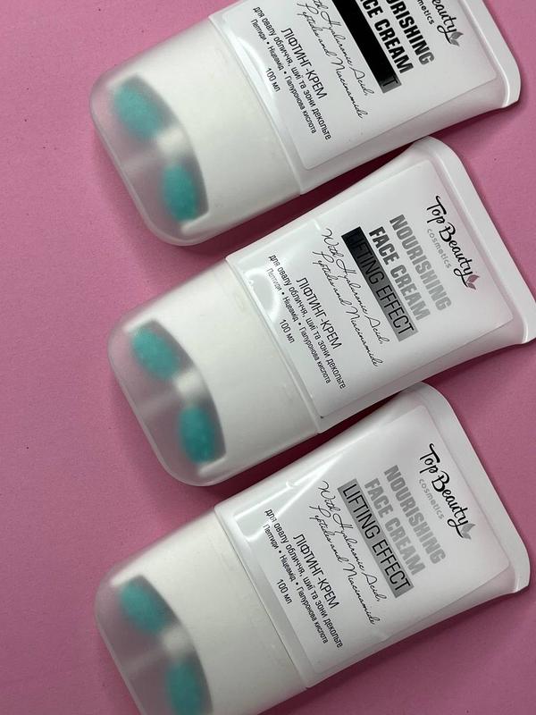 Лифтинг-крем для овала лица, шеи и зоны декольте с роликами для массажа от Top beauty. В его состав входят активные компоненты, которые вернут коже ее тонус и эластичность. антиоксидантних властивостей. Гиалуроновая кислота – не только увлажняет кожу, но и активизирует работу клеток кожи. Витамин Е – это сильный антиоксидант который способствует замедлению старения кожи, защищая клетки от повреждения свободными радикалами. Способ применение: на очищенную кожу лица и шеи нанести небольшое количество крема легкими массажными движениями. Объем 100 мл