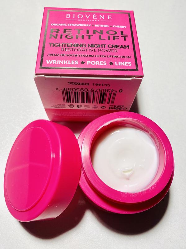 Большой выбор других товаров в ассортименте в нашем интернет -магазине " Мадам Шарман". Гуглите! Подарите коже свежесть и сияние — используйте ночной антивозрастной крем BIOVENE Retinol Night Lift ЭКСТРА ЛИФТИНГ. Он обеспечивает комплексное восстановление, делает кожу эластичной, гладкой и увлажненной. Подтягивающий ночной увлажняющий крем NIGHT LIFT с мощным ретинолом и органической клубникой восстанавливает упругость и помогает минимизировать появление тонких линий. Ретинол может способствовать обновлению кожи, ее сиянию, текстуре, а также уменьшить появление морщин и общее старение кожи. ОСОБЕННОСТИ ПРОДУКТА МОРЩИНЫ: заметно разглаживает морщины, делая кожу гладкой, увлажненной и наполненной энергией. ПОРЫ : Помогает уменьшить и минимизировать появление расширенных пор. ЛИНИИ: Устраняет многочисленные признаки старения и возвращает коже сияние молодости 98% Натуральные ингредиенты. Сделано в Европе. Дерматологически протестировано. Подходит для всех типов кожи; идеально подходит для нормальной, комбинированной и жирной кожи. Biovene не содержит сульфатов, SLS, SLES, парабенов, формальдегидов, фталатов, минеральных масел, микропластика, оксибензона, гидрохинона, триклозана, триклокарбана. Пожалуйста, уточняйте наличие перед оформлением заказа