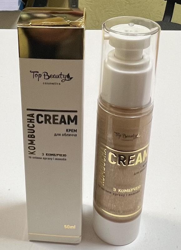 New🎉 Тепер в нас в наявності крем Top beauty з комбучею ( флакон вакуумний📍 ) Крем для обличчя з екстрактом комбучі для зволоження. Основою є екстракт комбучі та комплекс активних компонентів для зволоження шкіри. Екстракт комбучі – містить у собі вітаміни, м’які кислоти, та пробіотики, тобто є універсальним компонентом для комплексного догляду за шкірою. Оля аргани та джоджоба – створюють плівку для зменшення трансепідермальної втрати вологи Гіалуронова кислота – є компонентом для поверхневого зволоження шкіри Натуральний зволожуючий фактор – зумовлює глибоке зволоження шкіри обличчя Спосіб застосування: наносити засіб на суху та чисту шкіру масажними рухами.