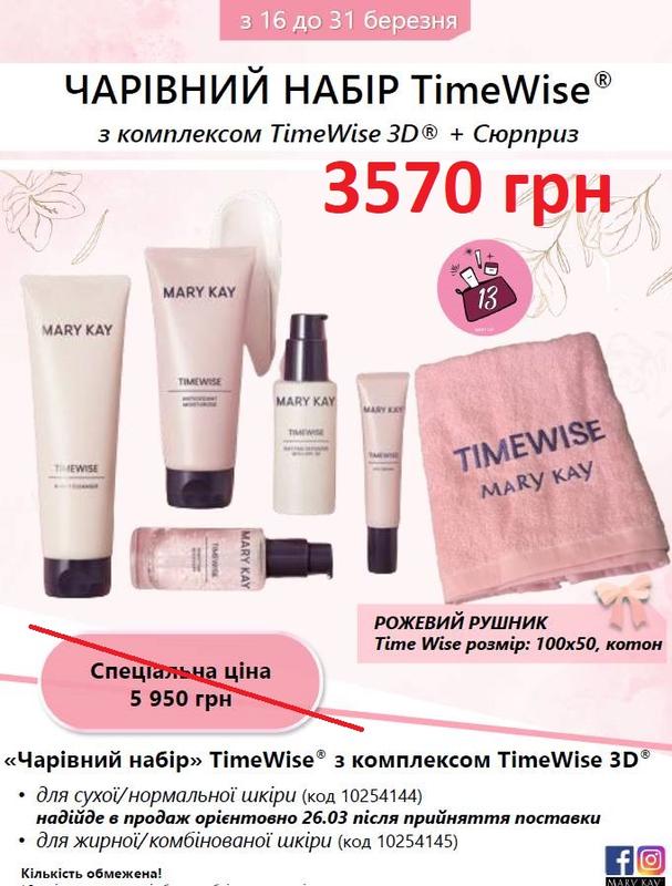 АКЦІЯ! к каждому волшебному набору подарок! *Волшебный набор Time Wise Ultimate 3D🔥* базовый системный уход цена 3300грн Удовлетворяет критические потребности кожи днем и ночью, помогая предупредить и остановить преждевременное старение кожи уже через 2 недели При регулярном использовании вы получите следующие результаты: ▫️Менее видимые возрастные линии и морщины ▫️Увлажнение ▫️Упругость ▫️Эластичная и гладкая кожа ▫️Сияющий вид и улучшение тона кожи ▫️Улучшение общего вида кожи Включает три ключевых компонента для защиты кожи: инкапсулированный ресвератрол, витамин B3 и антивозрастной пептид. Это обеспечивает кожу мощной защитой антиоксидантов, придает ей здоровое сияние и стимулирует изделию коллагена для поддержания молодости кожи, замедляет ее преждевременное старение. В состав набора входит: ▫️Очистка. ▫️Увлажнение ▫️Дневная защита ▫️Ночное восстановление ▫️Крем для кожи вокруг глаз 💵 Вы можете увидеть, что набором заказа дешевле, чем отдельно брать средства❤️