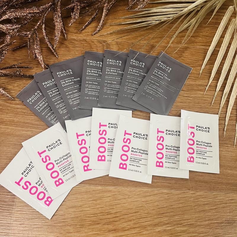 Оригинальный набор пробников Paula’s Choise, цена за все что на фото, а именно: - 2% BHA liquid exfoliant 7 шт * 3 мл - pro-collagen multi-peptide booster 7 шт * 1,5 мл