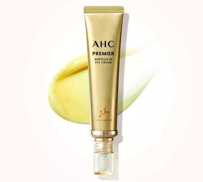 Ампульный крем для век AHC Premier Ampoule In Eye Cream – улучшенная формула (11 сезон) легендарного крема для век и проблемных зон лица теперь обогащена новым запатентованным ингредиентом, разработкой лаборатории АНС – collagen Т4. Это коллагеновые ампулы, идентичные человеческому коллагену, то есть с такой же аминокислотной последовательностью в активной части, как и у человека. Исследования показали, что средство помогает разглаживать не только мелкие, но и глубокие и устаревшие морщинки. Ретикулярный коллаген с большей скоростью и глубже впитывается во все слои кожи. Благодаря 4-м типам коллагена, ингредиентам золотого масла, пептидам, гиалуроновой кислоте и витамину С – крем обеспечивает вашей коже максимальный укрепляющий и подтягивающий уход. Его можно использовать на разные зоны, которые беспокоят вас морщинами, например: носогубная зона, на лбу, на шее и тд. Наконечник крема имеет нежный и мягкий эластомерный материал, который похож на пальцы – он помогает в аккуратном нанесении крема для ухода за выравниванием рельефа кожи, так как кожа вокруг глаз очень нежная. Высококонцентрированная формула крема содержит активный пептид молодости пентапептид-4 и гидролизованную гиалуроновую кислоту, что в 6 раз концентрированнее, чем в предыдущем выпуске крема. Palmitoyl Pentapeptide-4 – самый эффективный ингредиент против старения кожи, полностью совместимый с кожей, восстанавливает эпидермис, коллаген, эластин и основное вещество дермы, кожную матрицу, видимо, сокращает длину и глубину морщин. Это пептид, стимулирующий восстановление структурных элементов дермы. Результаты клинических исследований показали, что использование пептида в креме стимулирует синтез коллагена, эластина и гликозаминогликана. Благодаря этому восстанавливается толщина кожных покровов, которая уменьшается с возрастом, что приводит к морщинам. Гидролизованная гиалуроновая кислота – это органическая гиалуроновая кислота, полученная биотехнологическим способом. Проникает в глубь эпидермиса и обеспечивает глубокое увлажнение кожи. Стимулирует синтез протеинов белковых соединений для поддержания увлажнения кожи и предотвращает трансэпидермальную потерю влаги, увеличивает упругость кожи, стимулирует синтез коллагена. Средство обогащено также активными компонентами – ниацинамидом, пантенолом, экстрактом ламинарии, листьями настурции, водой зеленого чая, экстрактом солода, маслом ши, аденозином, церамидом, лауриновой кислотой, оливковым маслом, золотом, цветами аравия. В результате применения крема кожа становится более упругой и плотной. Средство обеспечивает мощный омолаживающий эффект. Применение: Для глаз – наносите крем на кожу области глаз. Для лица – очистите кожу тонером, равномерно нанесите крем на кожу. Дайте время средству впитаться. 1 мл