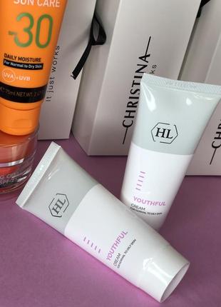 🔸Крем для нормальной и жирной кожи🔸 Youthful Cream for Normal to Oily Skin Holy Land 🌟Youthful - новая линия по уходу за молодой кожей, разработанная специалистами компании Holy Land, средства которой обеспечивают ежедневный профессиональный уход Крем защищает молодую кожу от появления новых очагов акне и ускоряет заживление уже существующих. Также крем освещает пигментацию, оставшуюся после воспалений и не дающую сформируются рубцами 📍Цена на крем в объявлении указана по 5мл/131грн в разделении Подол⚖️ 20мл/475рн 30мл/675грн 50мл/1070грн Брендовая упаковка💰 70мл/1275грн ☝https://shafa.ua/uk/my/reviews Приглашаю перейти по усиливанию на шкафу в раздел отзывы и узнать о моей работе с заказами 🌾Подписывайся на мою страницу и одержи информацию о акцийх и персональных предложениях! 💦Крем супер легкой текстуры на основе целебных растительных экстрактов и витаминов отлично увлажняет и защищает нормальную/жирную кожу 🌱В состав крема входит уникальный компонент - смола драконового дерева, которая имеет антибактериальную и утягивающее действие, а также стимулирует синтез коллагена и улучшает регенерацию кожи 🌝 Средство оказывает восстанавливающее действие, успокаивает кожу, защищает ее от появления новых очагов акне и ускоряет заживление уже существующих и интенсивно увлажняет Также крем освещает оставшуюся пигментацию после воспалений и не дает сформироваться рубцам 👩Применение 1. Нанесите небольшое количество крема на предварительно очищенную кожу лица и шеи 2. помассируйте для лучшего впитывания Рекомендуем использовать крем два разы в день — утром и на ночь 😊Результат применения крема Молодая, здоровая, хорошо увлажненная, свежая, сияющая кожа! 🌸🌼🍀☘🍃 Активные ингибиенты Экстракты эхинацеи, ромашки, арники, календулы, гамамелиса, зеленого чая, гингко Билоба, женьшеня, фенхеля, мелиссы, тысячелистника, солодки имеют противовоспалительное и антисеборейное действие, сокращают поры, улучшают качество кожи, выравнивают ее цвет и текстуру ❤️ Holy Land - Израиль Заказывайте в Direct📩